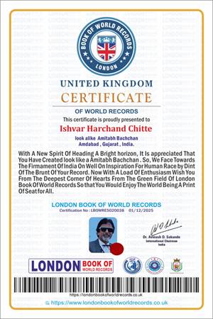 An important milestone in Chitte’s career was his recognition by the London Book of World Records. A certificate was presented to him, honoring him for his ability to resemble Amitabh Bachchan so closely that it’s considered a world record. The certificate praised him as an “inspiration to humanity” and his unique success in the field of lookalikes.